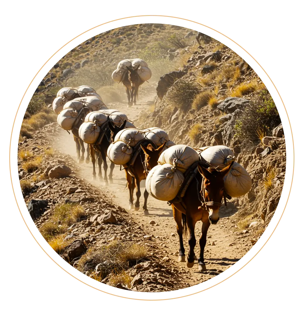 Nuestro nombre hace eco del trayecto que, siglos atrás, recorrieron las caravanas de mulas cargadas de minerales extraídos del subsuelo. En esos tiempos, el “quinto real”, impuesto reservado al rey, simbolizaba la riqueza y el poder que fluían por estas tierras. Pero, más allá del oro y la plata, lo que realmente nos distingue hoy es la riqueza viva del territorio, la cultura que ha perdurado y el valor de trabajar la tierra con respeto.